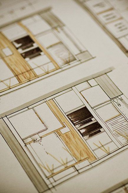 Jeder Entwurf, ob Küchenzeile oder Zweifamilienhaus, wird bei uns im Maßstab 1:20 handgezeichnet und auch von Hand koloriert. Dahinter steckt nicht allein die Lust unseres Teams am Detail, an der eigenen Kreativität und unser vitaler Gestaltungswille, sondern vor allem ist dieses Vorgehen der Ausdruck unserer Grundüberzeugung, das Herzstück unserer Philosophie.